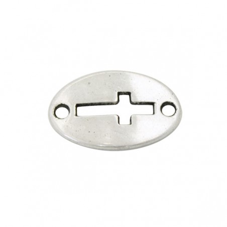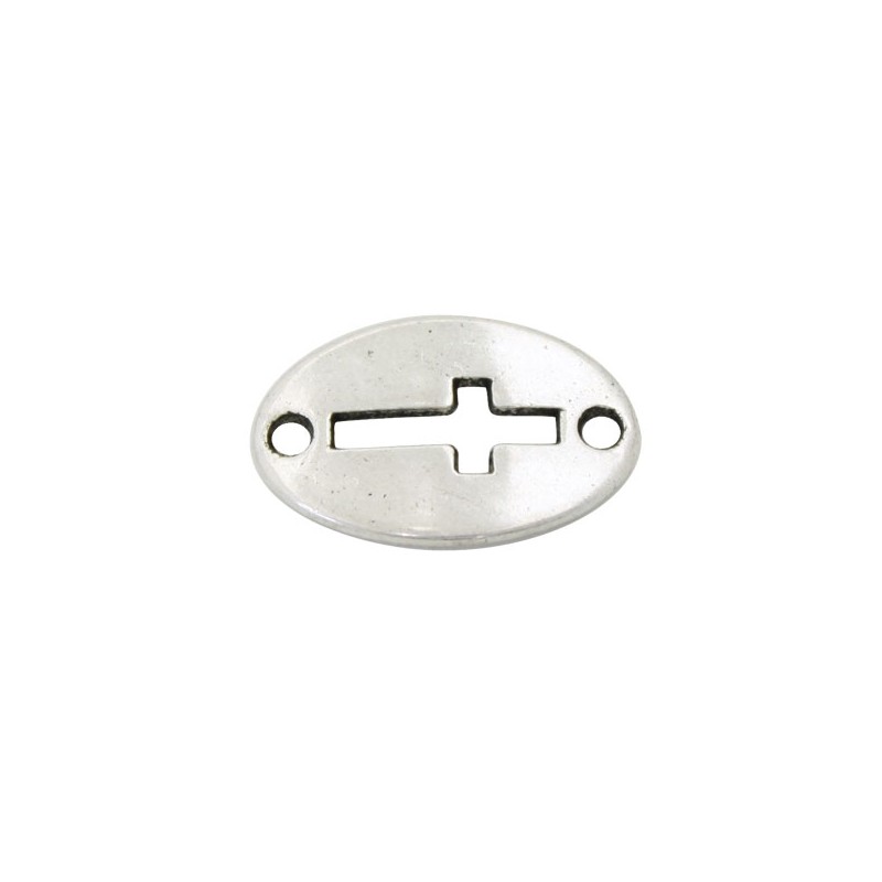 - Croix intercalaire en zamac avec argenté. - La taille est de 20 millimètres et a deux trous de 2 millimètres. - Le prix est par sac et le sac contient 1 unité.