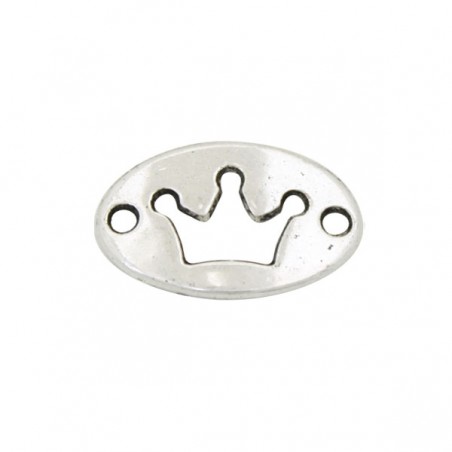 - Couronne recadrée en zamac avec argenté. - La taille est de 20 millimètres et a deux trous de 2 millimètres. - Le prix est par sac et le sac contient 1 unité.