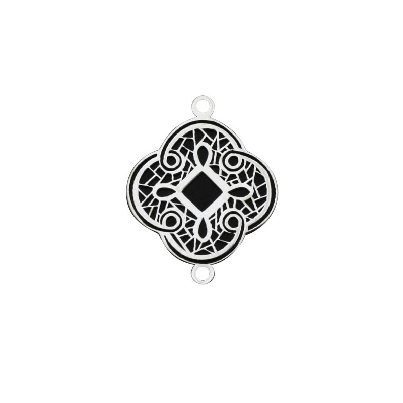 - Petit intercalaire avec motif mandala en argent 925. - La taille est de 17 millimètres et a un anneau avec un intérieur de 1,3 millimètres. - Le prix est par sac et le sac contient 1 unité. - Le méthacrylate noir est uniquement une exposition et n’est pas inclus, le prix ne correspond qu’à la pièce d’argent.