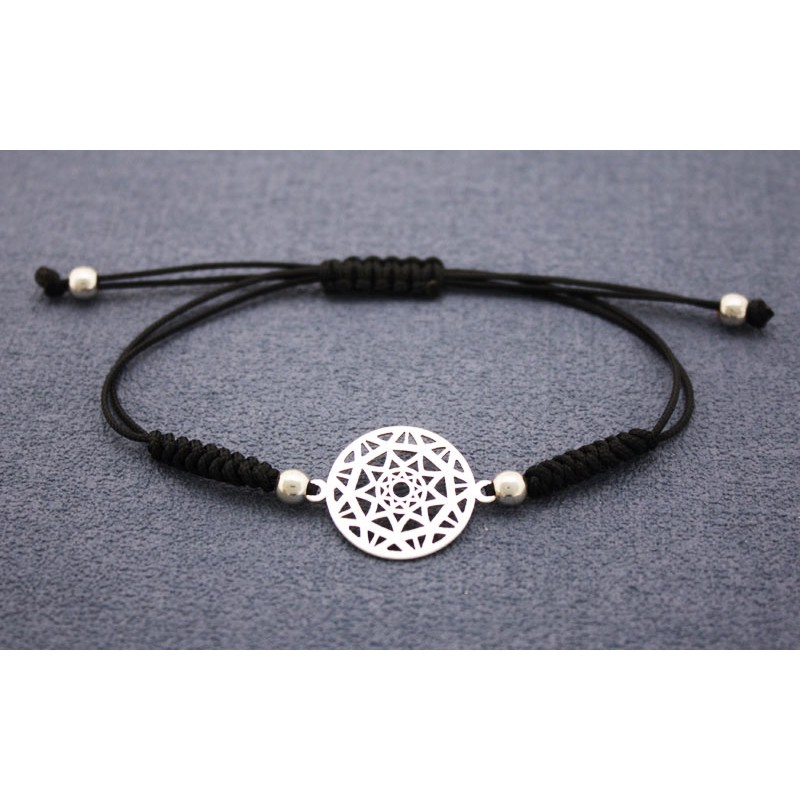 - Petit intercalaire avec motif mandala en argent 925. - La taille est de 17 millimètres et a un anneau avec un intérieur de 1,3 millimètres. - Le prix est par sac et le sac contient 1 unité. - Le méthacrylate noir est uniquement une exposition et n’est pas inclus, le prix ne correspond qu’à la pièce d’argent.