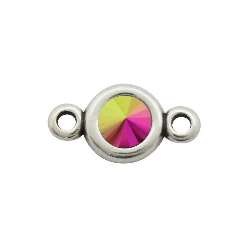 - Intercalaire macramé dans zamac argenté avec verre coloré. - La taille est de 23x13 millimètres et l’anneau a une perceuse de 2,5 millimètres. - Le verre est inclus et vient sans coller à la pièce. - Le prix est par unité.