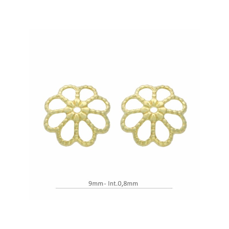 Coupelles fleur ajourne fantaisie 9 mm. argent 925 doré d’argent