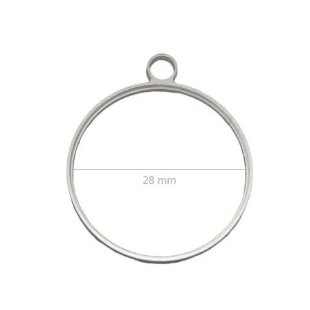 Pendentif circulaire de petite taille, en argent 925. Le sac contient 1 unité. Le diamètre est de 28 mm. et l’anneau est de 4 mm.