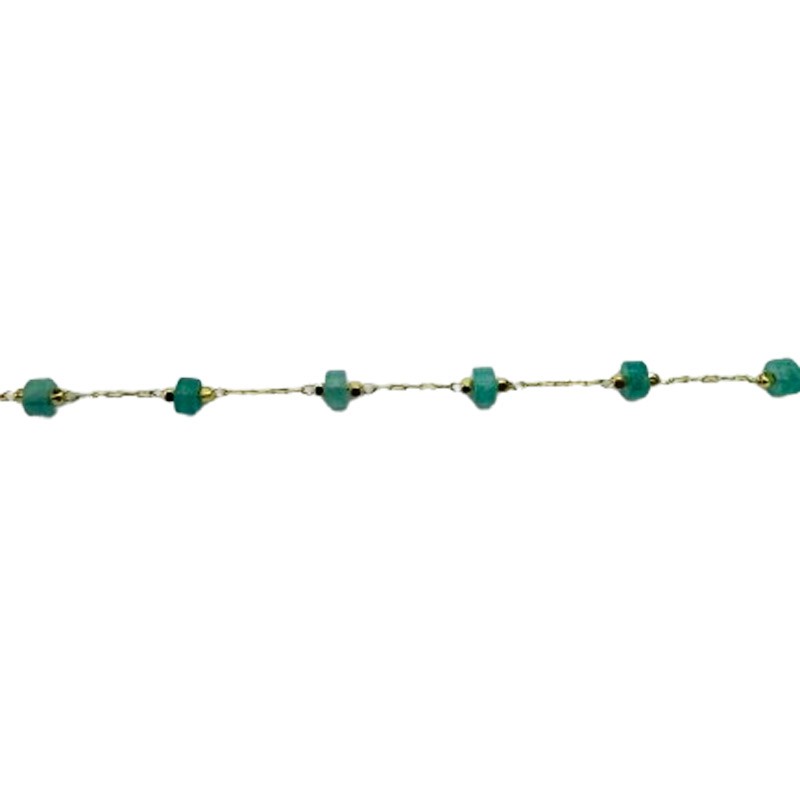 - Mini chaîne à maillons ovales avec perles de quartz de jade sous forme de donuts à quelques mètres en laiton plaqué or.