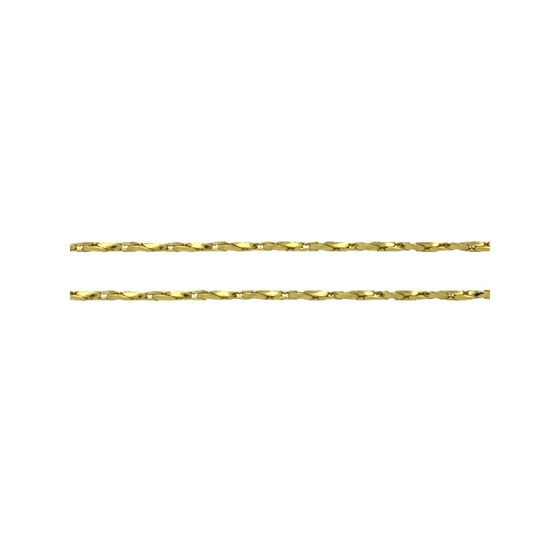 Chaîne de brocart en laiton lisse de couleur or. Le prix correspond à 20cm et la vente se fait en quantités qui sont un multiple de 20cm. Par exemple: Vous pouvez acheter 20cm, 40cm, 60cm, etc. Chaque fois que le rouleau le permet, il sera livré en une seule bande sans couper. La vente et le prix sont indiqués en bandes de 20cm, une unité équivaut à 20cm de produit. Par exemple: Si vous voulez « 20 centimètres », vous devrez mettre dans la section quantité « 1 ». Si vous voulez « 40 centimètres », vous devrez mettre dans la section quantité « 2 ». Si vous voulez « 1 mètre », vous devrez mettre dans la section quantité « 5 ».