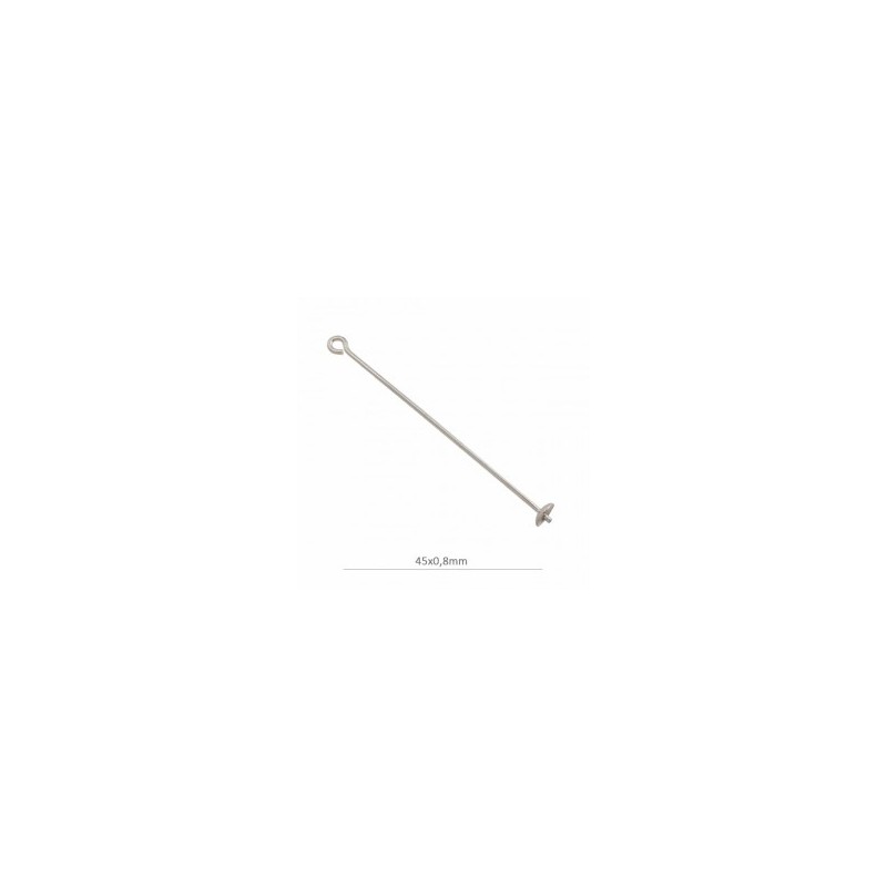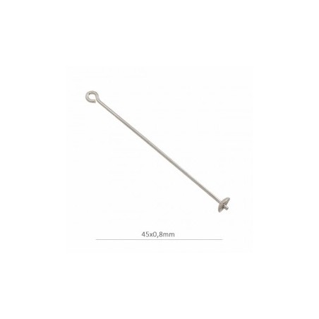 Clou tête ronde avec coupelles et brochette, en argent 925. Le sac contient 2 unités. La longueur est de 45 mm. et la longueur utile est de 39 mm. Le filetage est de 0,8 mm et la brochette de 2 mm.