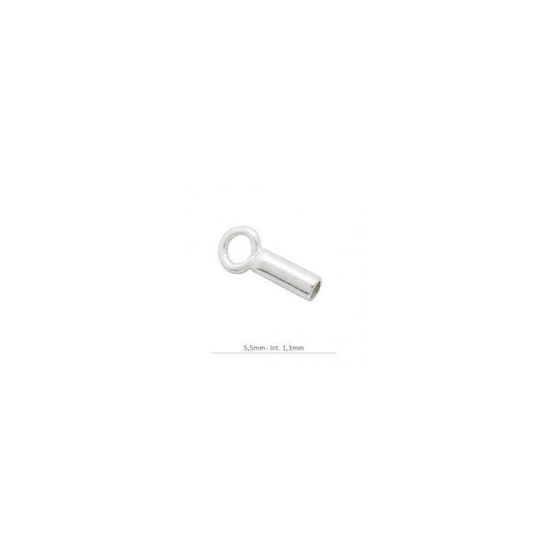 Terminal tube fermé avec anneau pour cordon 1 mm. Le tube mesure 5mm de long et 1,3 mm à l'intérieur en argent 925. Fabriqué en Espagne.