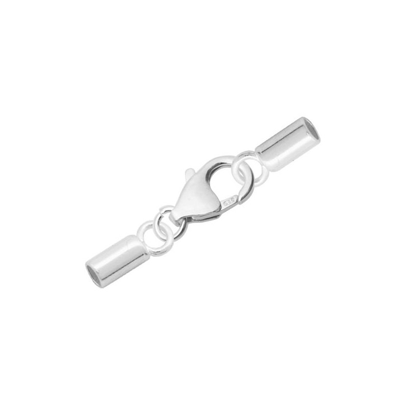 Embout tube monté avec mousqueton pour cordon 3 mm. Le tube mesure 5,6 mm de long et 3 mm à l'intérieur en argent 925. Fabriqué en Espagne.