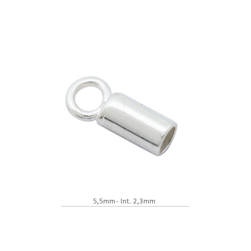 Terminal tube fermé avec anneau pour cordon 2mm. Le tube mesure 5mm de long et 2,3 mm à l'intérieur en argent 925. Fabriqué en Espagne.