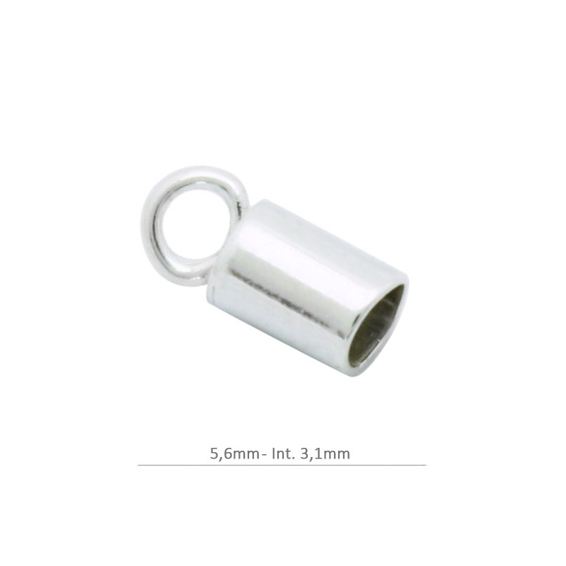 Embout tube fermé avec anneau pour cordon 3 mm. Le tube mesure 5 mm de long et 3 mm à l'intérieur en argent 925. Fabriqué en Espagne.