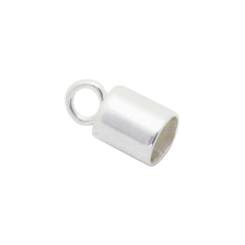 Terminal tube fermée avec anneau pour cordon 4 mm. Le tube mesure 5,3 mm de long et 4 mm à l'intérieur en argent sterling 925. Fabriqué en Espagne.