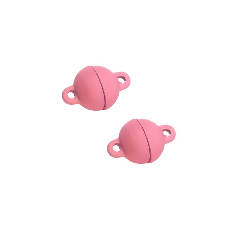 Fermeture aimantée ronde en cuivre laqué rose, de 8 mm de diamètre. Pour le montage, nous recommandons d'utiliser un filetage de 0,8 mm.