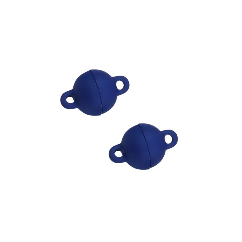 Fermeture aimantée ronde en cuivre laqué bleu marine, de 8 mm de diamètre. Pour le montage, nous recommandons d'utiliser un filetage de 0,8 mm.