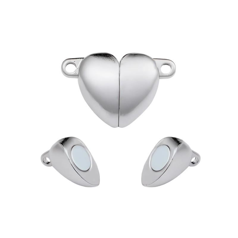 Fermoir magnétique en forme de coeur en cuivre laqué argent mat de 10 mm.