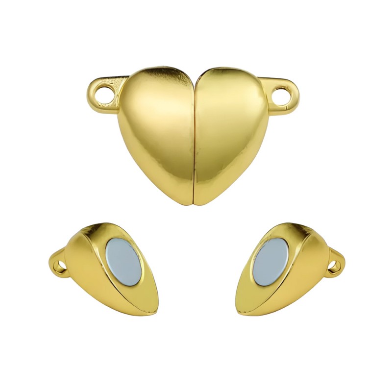 Fermoir magnétique en forme de coeur en cuivre laqué doré de 10,8 mm.