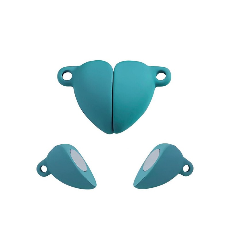 Fermoir magnétique en forme de coeur en cuivre laqué bleu turquoise de 10 mm.