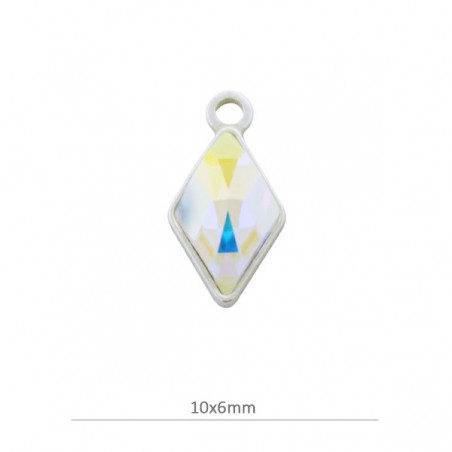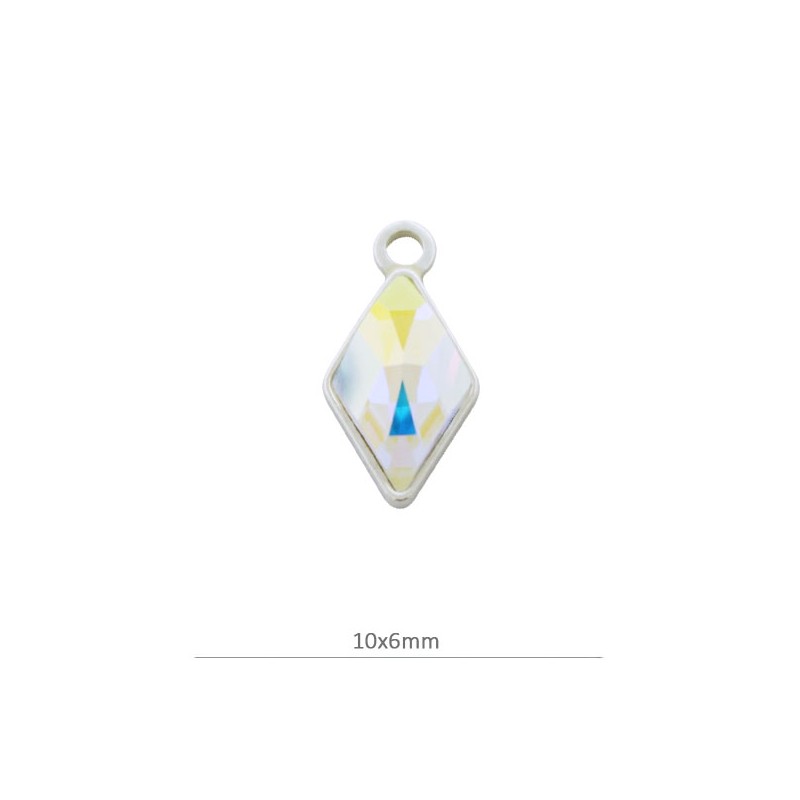 - Pendentif en diamant en argent avec cristal Swarovski. - La taille est de 10x6 millimètres. - Le verre est inclus dans le prix. - Le prix est par sac et le sac contient 2 unités.