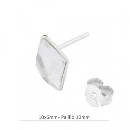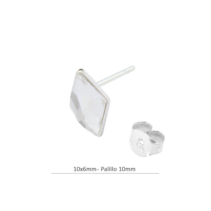 - Boucle d’oreille en diamant en argent avec cristal Swarovski. - La taille est de 10x6 millimètres. - Les cristaux et les Poussoirs - Poussettes sont inclus dans le prix. - Le prix est par sac et le sac contient 2 unités.