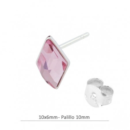 - Boucle d’oreille en diamant en argent avec cristal Swarovski. - La taille est de 10x6 millimètres. - Les cristaux et les Poussoirs - Poussettes sont inclus dans le prix. - Le prix est par sac et le sac contient 2 unités.