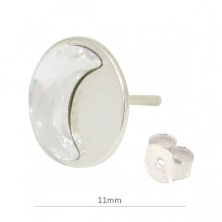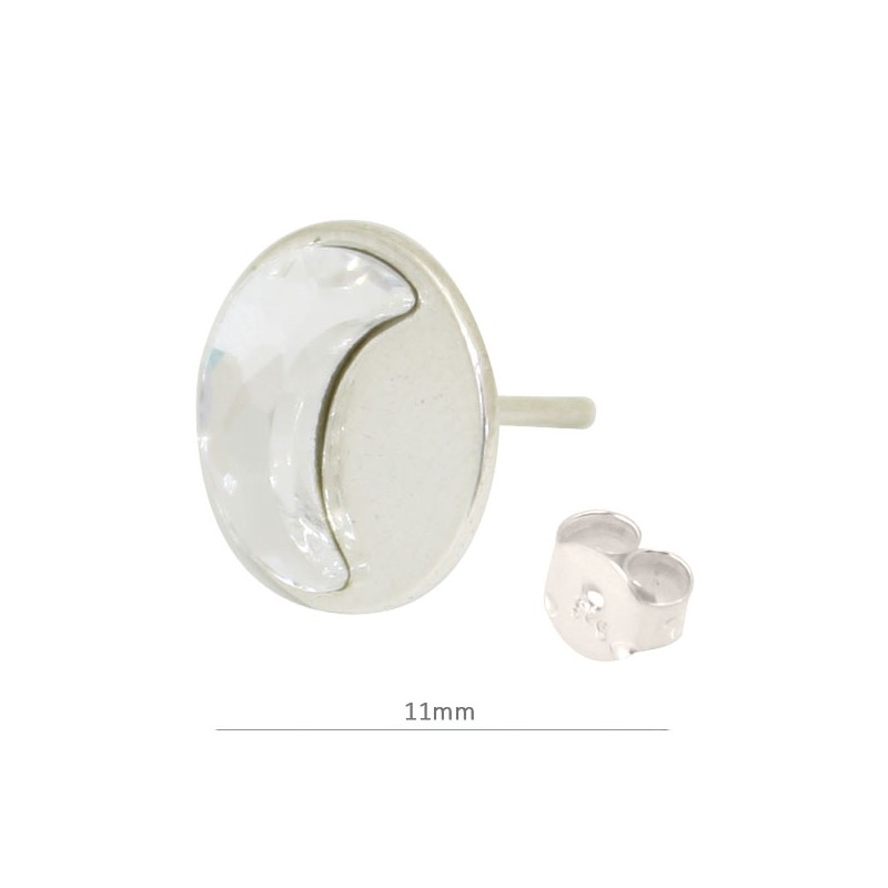 - Boucles d’oreilles en lunette lunaire en argent avec cristal Swarovski. - La taille est de 11 millimètres. - Le verre vient sans coller à la pièce. - Le prix est par sac et le sac contient 2 unités.