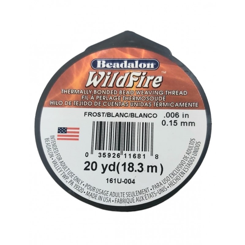 - Fil de nylon ciré. Marque WildFire. - L’épaisseur est de 0,15 millimètre et la bobine est de 18,3 mètres. Couleur blanche - Le prix est par bobine.
