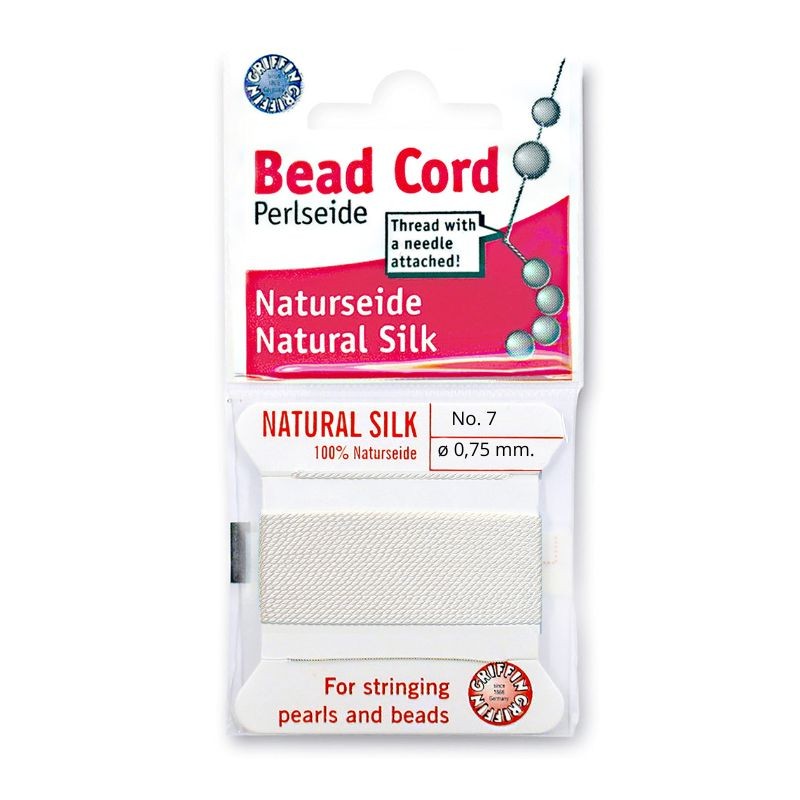 Fil de soie blanc d'une épaisseur de 0,75 mm pour enfiler des perles.