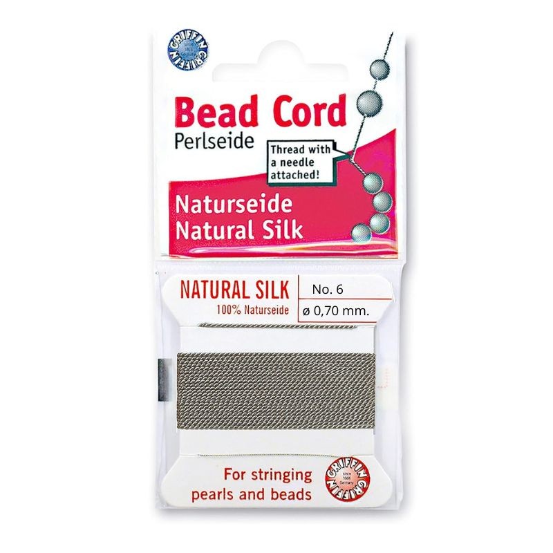 Fil de soie pour perles + aiguille. Gris 0,70 mm.