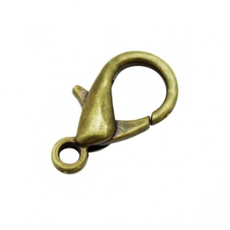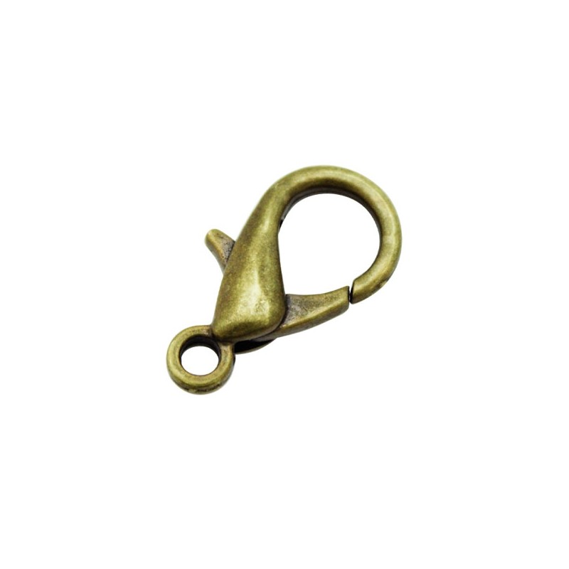 - Mousqueton en laiton de couleur or ancien. - La taille est de 15 millimètres et a une perceuse approximative de 1 millimètre. - Le prix est par sac et le sac contient 5 unités.