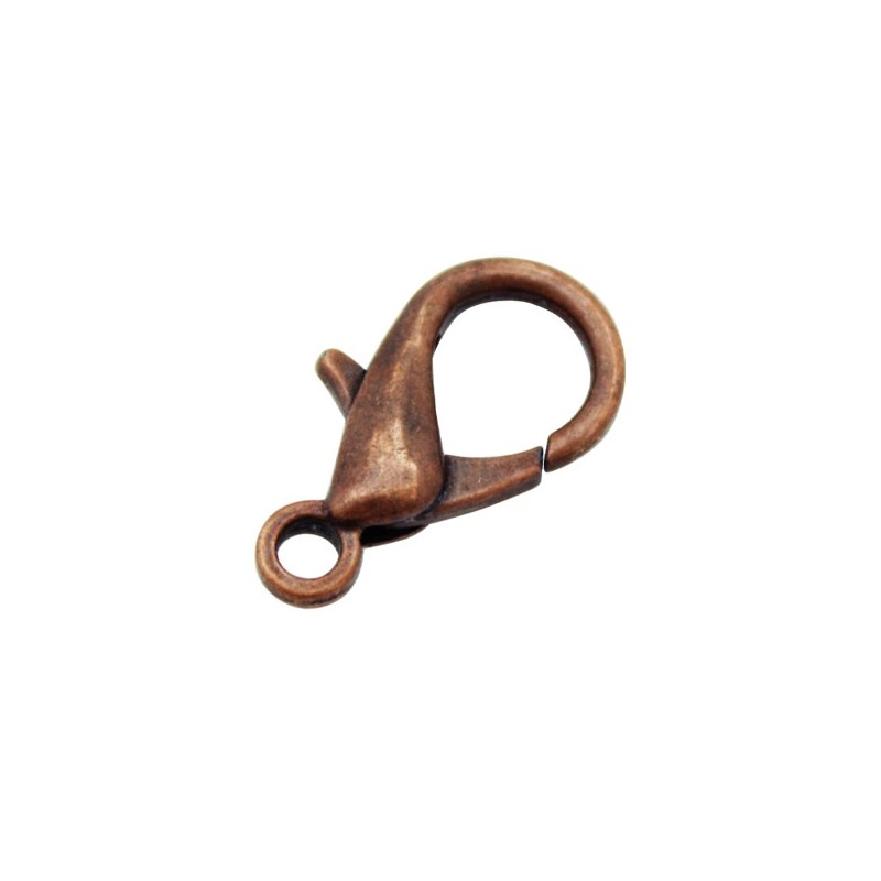 - Mousqueton en laiton de couleur cuivre. - La taille est de 15 millimètres et a une perceuse approximative de 1 millimètre. - Le prix est par sac et le sac contient 5 unités.