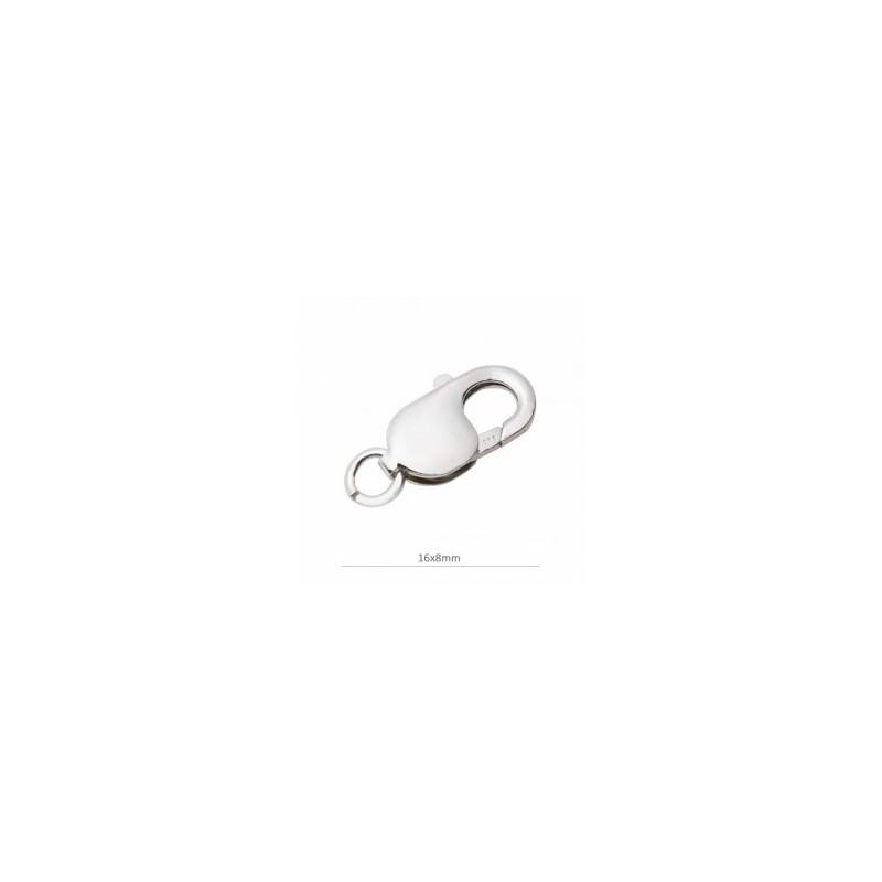 Mousqueton n°4 avec bague, en argent 925. Le sac contient 1 unité et la taille est de 16x8 mm.