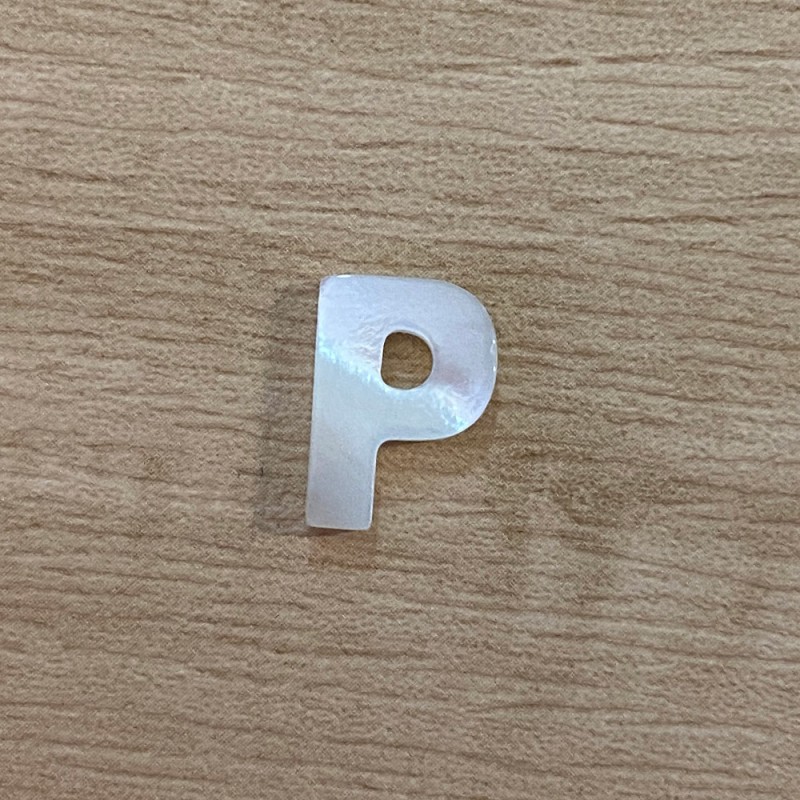 Pendentif initial en lettre nacar P. Longueur 10mm.