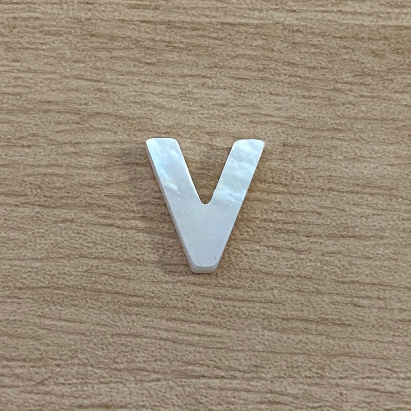 Pendentif initial en lettre nacarf V. Longueur 10mm.