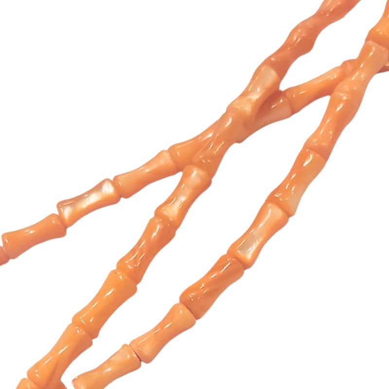 Intercalaire en forme d'os en nacre orange avec un trou au milieu.