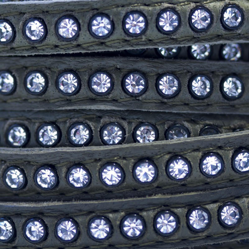 Cuir avec Swarovski 6mm. Loden