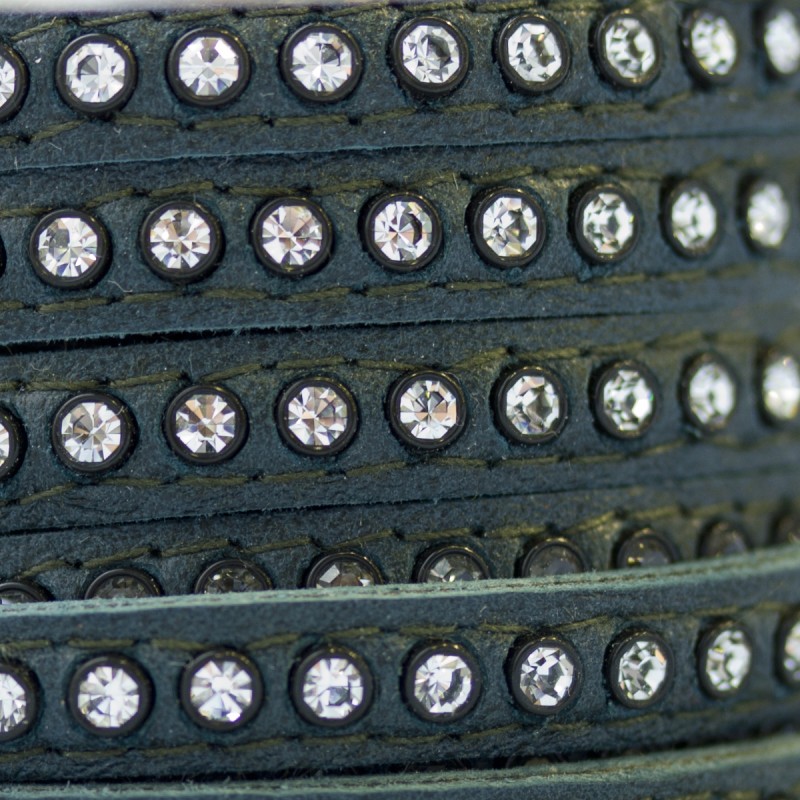Cuir avec Swarovski 6mm. Turquoise foncé