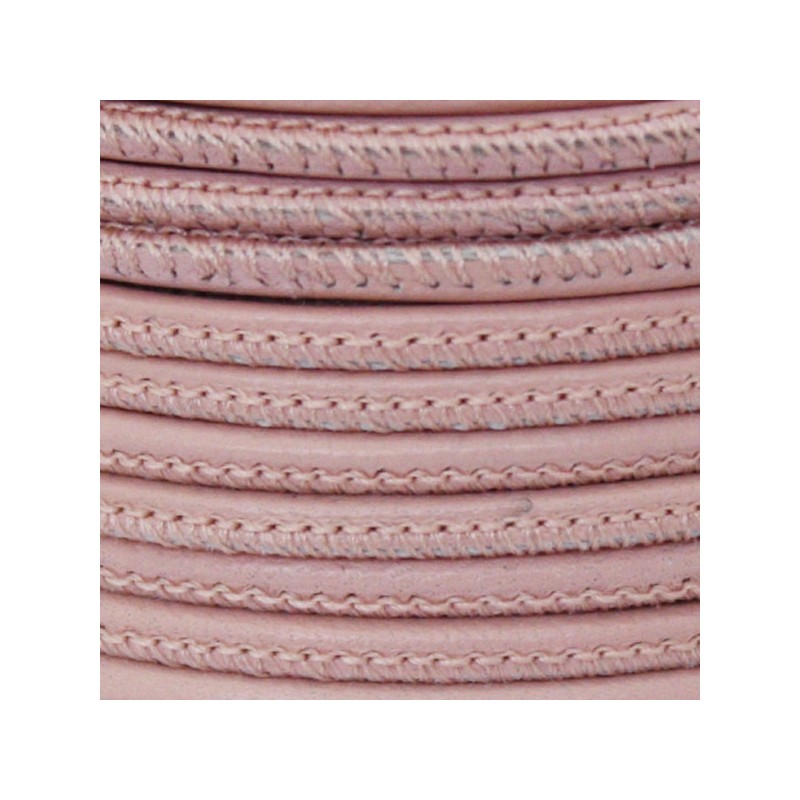 Cuir Napa cousu 4mm. Bébé rose