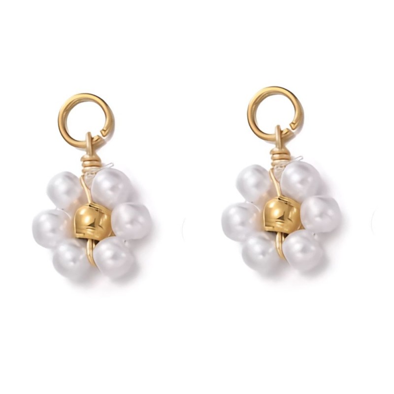 Pendentif marguerite perlée à cinq pétales avec anneau ouvert en acier inoxydable doré.