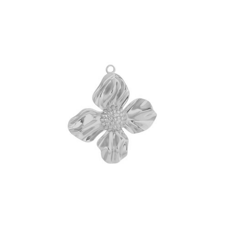 Pendentif fleur de cornouiller de 32 mm. Acier inoxydable.