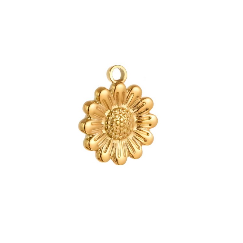Pendentif marguerite 16,5 mm en acier inoxydable doré.