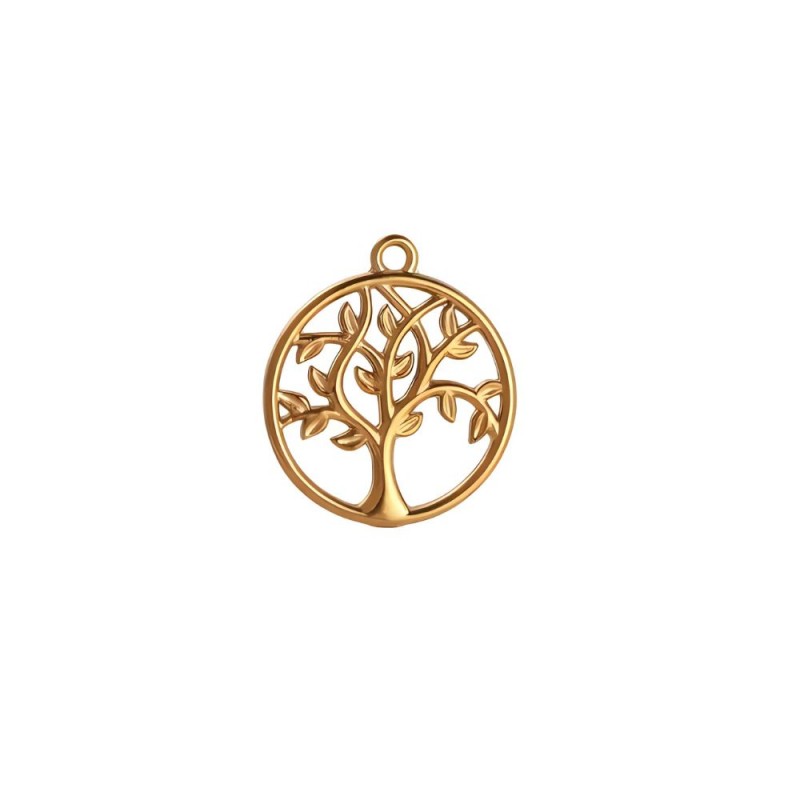 Pendentif arbre de la vie 18 mm. Acier inoxydable doré.