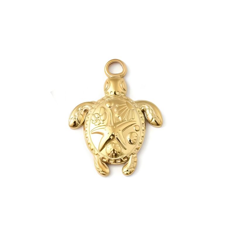 Pendentif tortue de mer 23 mm. Acier inoxydable doré.