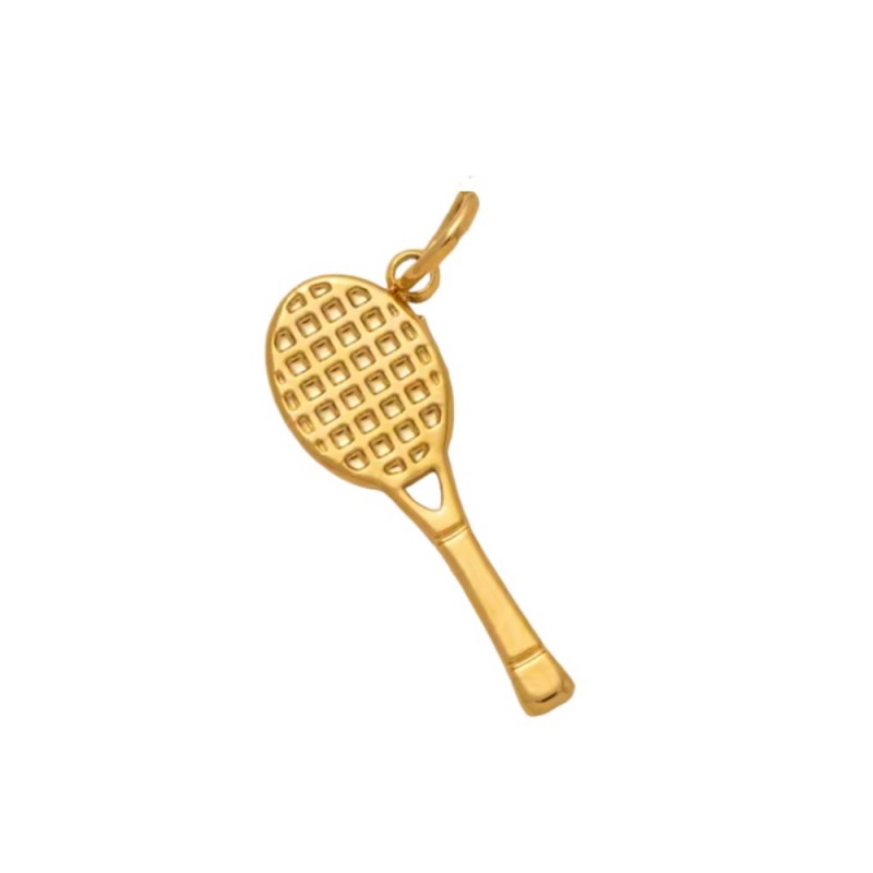 Pendentif raquette de tennis 22,3 mm avec anneau ouvert en acier inoxydable doré