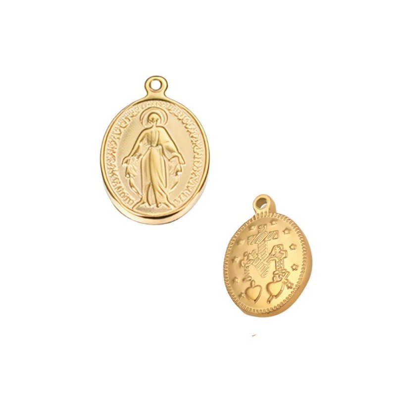 Pendentif Vierge Marie 19 mm en acier inoxydable doré.