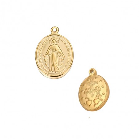 Pendentif Vierge Marie 19mm. Acier inoxydable doré.