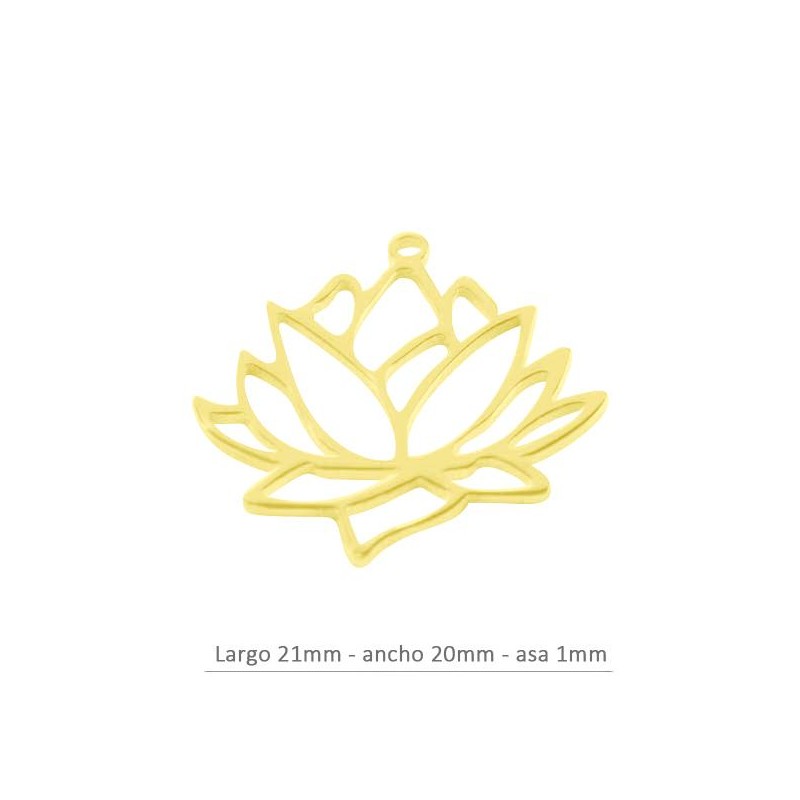 - Pendentif en fleur de lotus argent 925 doré - La taille est de 21mm de long - 20mm de largeur - anneau de 1mm - Le prix est par sac et le sac contient une unité.