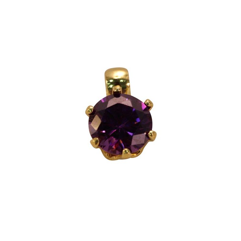 Pendentif en zirconite améthyste 7 mm serti en argent argent 925 doré