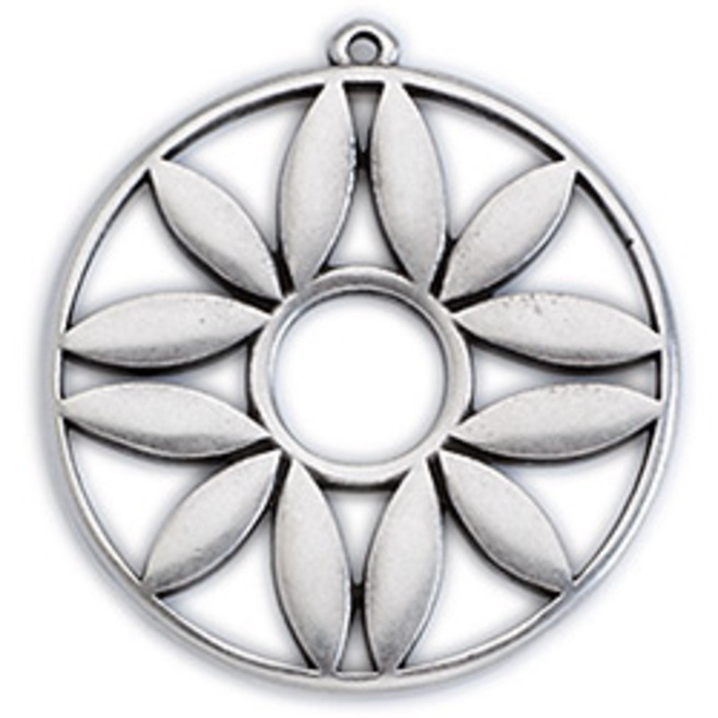 - Pendentif fleuri de 43 x 40 mm. Argenté - Le prix est par unité.