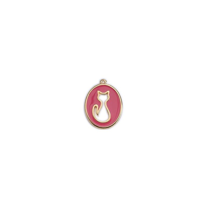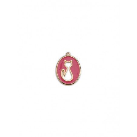 Pendentif en émail rose chat de 33x25mm. Doré.