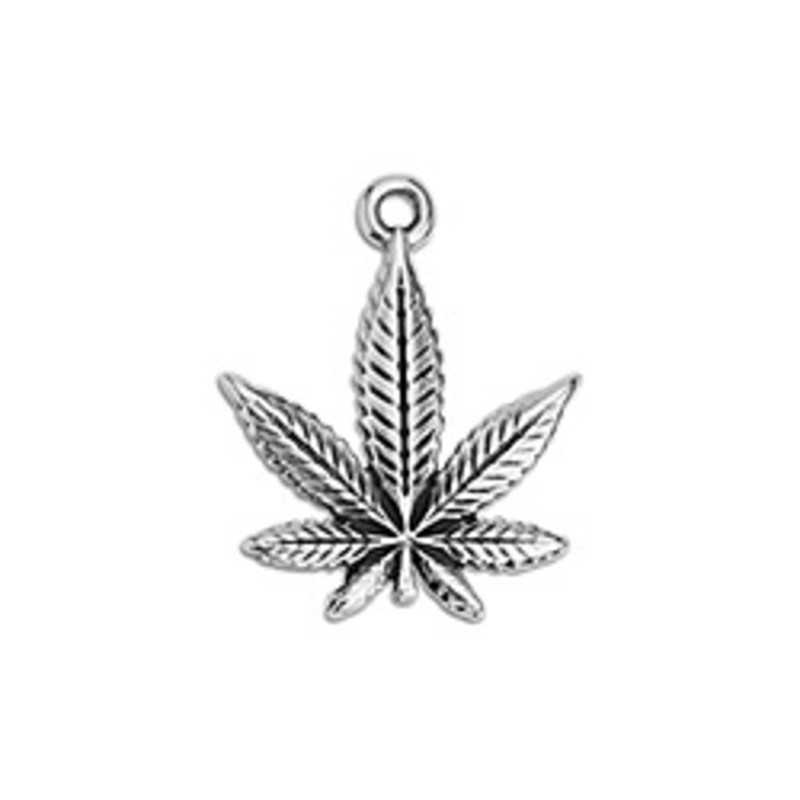 - Pendentif feuille de cannabis 20mm. Argenté. - Le prix est par sac et le sac contient 1 unité.