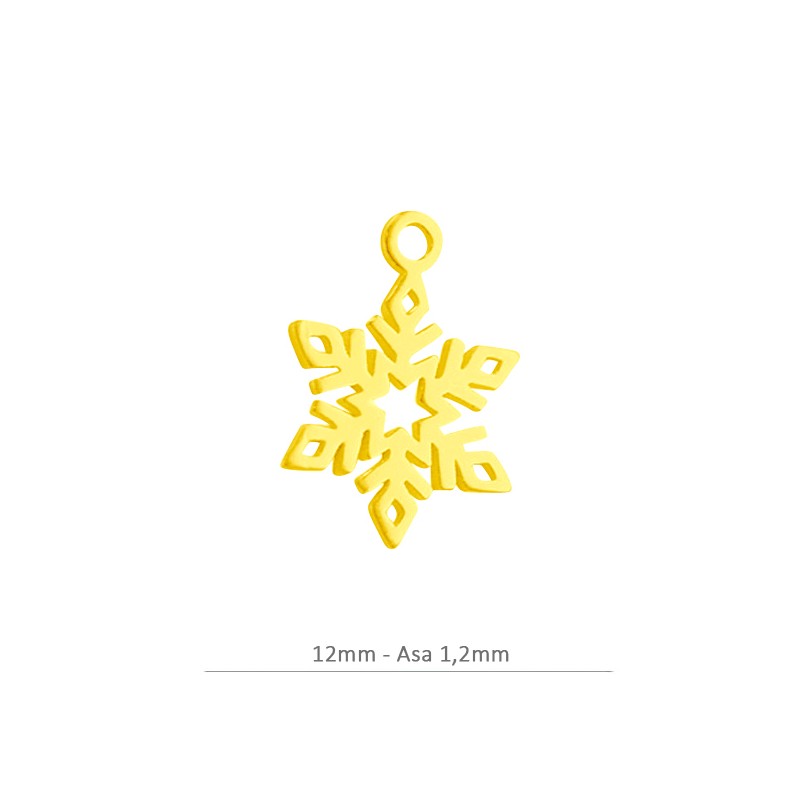 Pendentif flocon de neige avec bague, argent avec un placage or. Le sac contient 1 unité, la taille est de 12 mm. et la perceuse est de 1 mm.